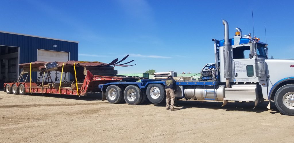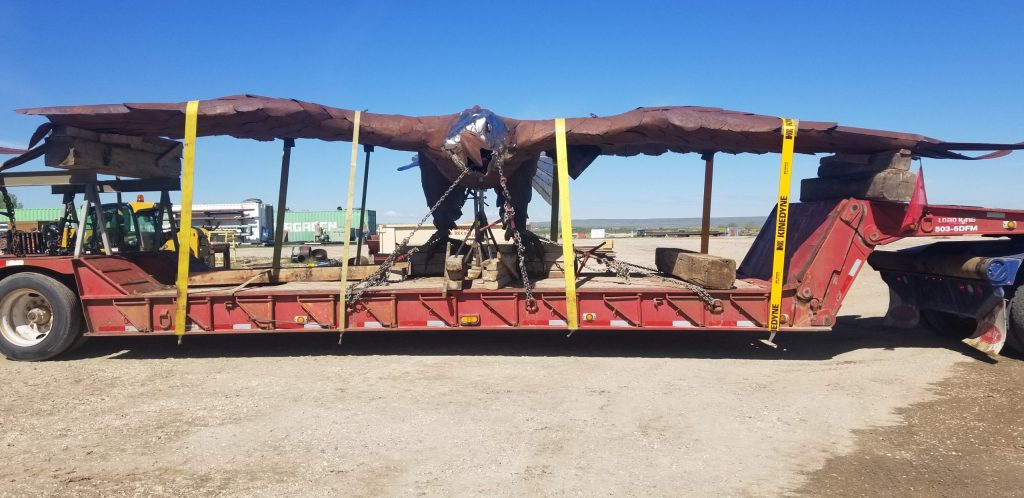 To complete repairs on the Mills Eagle, Reeb Welding worked with High Country Crane Service and U – Know Services, LLC to safely lower the eagle from its perch and transport it to the Reeb Welding shop. There, our team reinforced, reconnected, and rewelded all pieces of the eagle to ensure its longevity and ability to withstand the Wyoming elements for years to come. A final inspection of the eagle in its entirety was performed before being sent back to the City of Mills.
