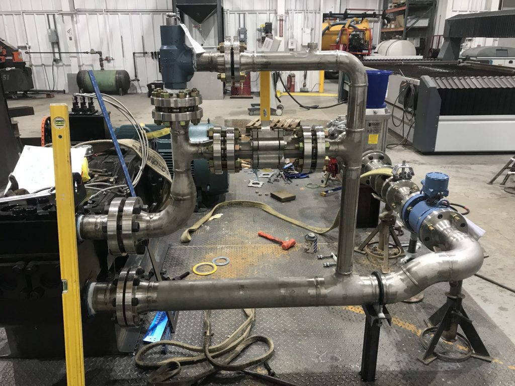 Reeb Welding recently completed a custom-built project for a customer to fabricate stainless steel piping for a saltwater pump. This project included the design and fabrication of the piping and installing the proper valves to the customer’s specifications. Due to the nature of the pipes’ oil field use, Reeb Welding carefully determined the rigidity of the material and all elements of the build to withstand the high corrosion rate of saltwater. The final product was delivered and installed, resulting in customer satisfaction and a high quality, sustainable product.